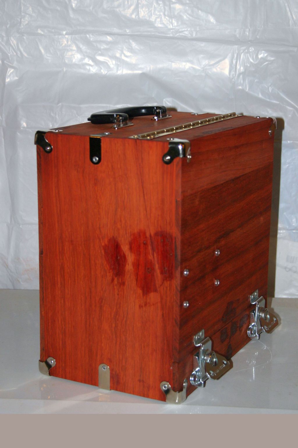 The door is made the same way as the rest of the box - 1/4 Paudauk, pinned